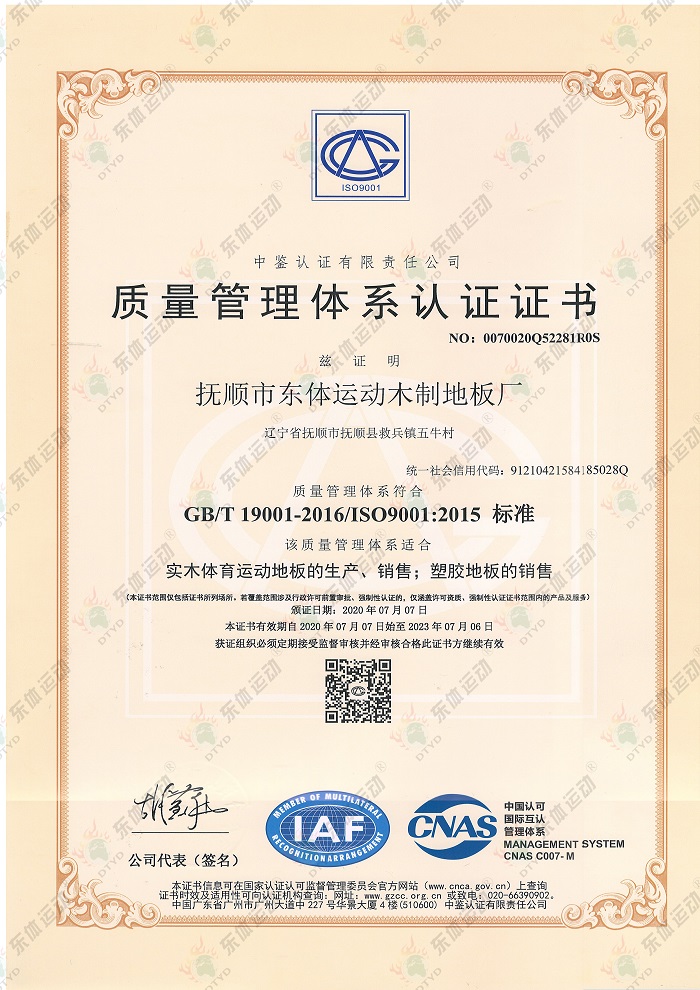 “東體運動”木地板系列產(chǎn)品已經(jīng)通過國際籃聯(lián)檢測、世界羽聯(lián)認證、歐盟體育地板專項標準CE認證、歐盟環(huán)保產(chǎn)品CE認證、FSC世界森林協(xié)會認證、五星級售后服務(wù)企業(yè)認證等,是中國職業(yè)籃球俱樂部遼寧沈陽三生飛豹籃球俱樂部官方合作伙伴,內(nèi)蒙古籃球協(xié)會戰(zhàn)略合作伙伴。